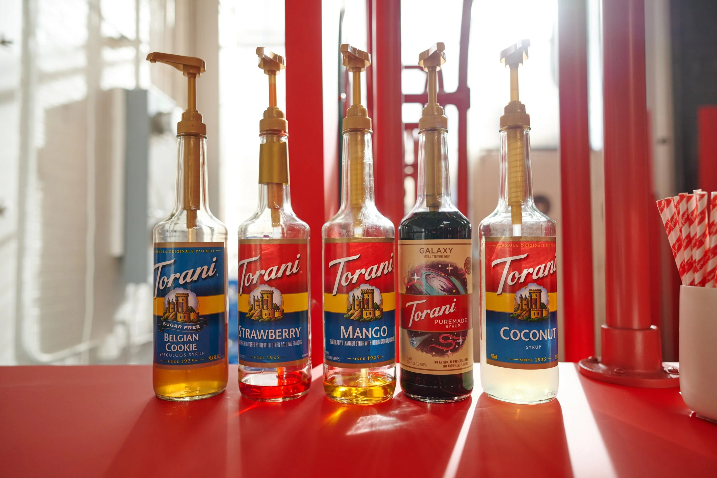 Syrup Sommeliers ushered fans along in their mixology journey, prepping each of the cups with carefully printed recipe stickers. Then, the magic happened! The U-shaped bar, a dazzling display of 27 Torani bottles, lit up to spotlight the exact syrups needed.